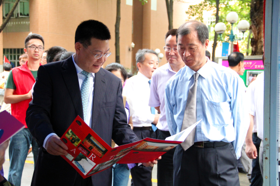 仲伟合陪同省教育厅副巡视员胡振敏走访各个摊位