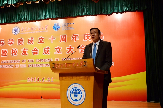 在庆典致辞中,我校副校长方凡泉总结了国际学院十年来的办学成果,称赞其作为我国出国留学培训的先行者,在积极整合大学国际教育合作优势资源的基础上,开创了国际化特色鲜明的国内外高等院校联合培养模式,并成功于2013年成为教育部出国留学培训和研究中心。目前我校国际学院已与18所国外院校建立了友好合作关系,大大增强了我校对外合作交流的综合实力。