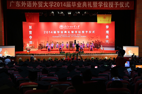 本网讯 云山俊丽,珠水秀美,花开仲夏,凤舞岭南。6月24日,我校2014届首场毕业典礼暨学位授予仪式在南校区大会堂拉开帷幕。首场毕业典礼为管理学院、思政学院以及政管学院856名毕业生授予学位,在接下来的四天内,还有六场毕业典礼将在南北校相继举行。校长仲伟合在七场毕业典礼上将为5787名毕业生颁发学位证书,并一一拨穗。校长八分钟激情洋溢的致辞搏得了在场毕业生的阵阵掌声和强烈共鸣。