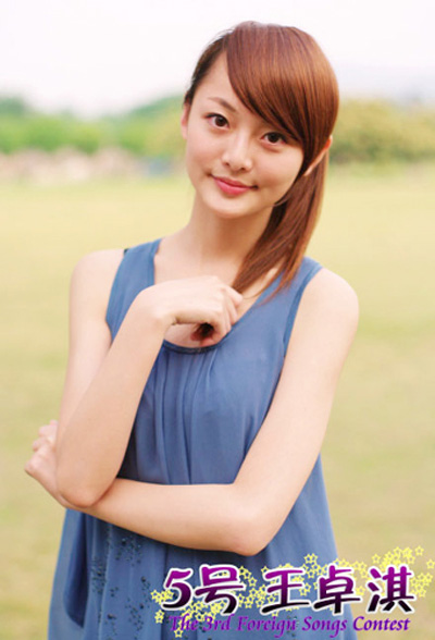 王卓淇在校期间参加外国语歌唱大赛的宣传照