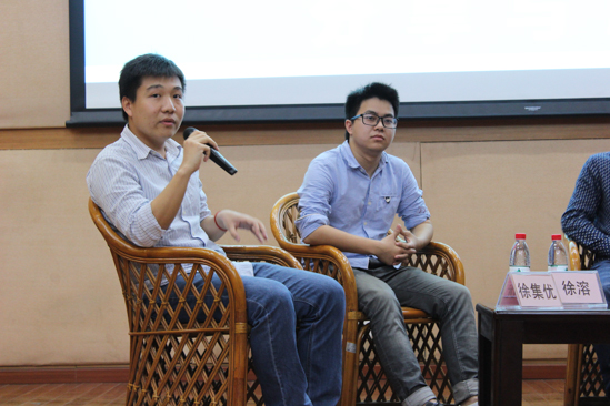 在南校区专场,四名同伴辅导团的学生导师徐集优、徐溶、黄河和何涵之进行了关于大学生创新创业方面的经验分享。徐集优认为创新要在专业性、系统性两方面下功夫,且要跨界学习,把握契机促成团队发展,他还总结了发现问题、进行建模、大胆假设和小心检验四个思想付诸实践的步骤;徐溶谈创业时提到,要学会放弃和整合资源,并找到能帮助自己开拓视野的人组成团队;黄河着重强调有了想法不仅要去做,而且要团结一群人一起做,且领导者的能力与风格对团队发展影响很大;何涵之也提出了创新创业的三方面能力:即团队合作能力、沟通能力和团队的执行能力。