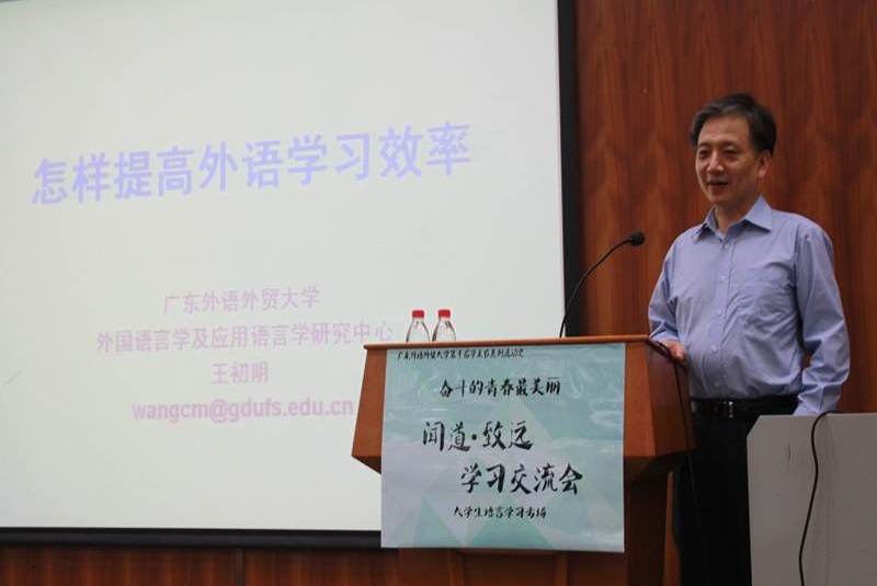 今年,在北校区的大学生语言学习专场中,王初明就怎样提高外语学习效率作了主题讲座。他指出,对话是习得语言最根本的途径,并以“对话”为切入点总结了促学语言的五个关键特征:交际意图、互动协同、语境融入、内生表达动力、语言理解与产出结合。他引用寓言故事和时事新闻,让同学们更好地理解演讲的理论内容从而运用到实际中去。