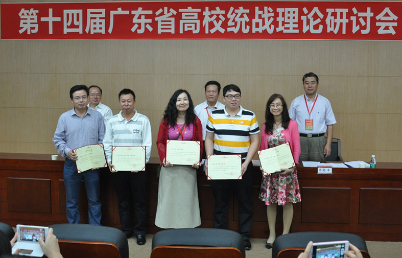 来自中山大学、华南理工大学、暨南大学、佛山科学技术学院的5位优秀论文作者分别发言,交流理论心得,相关专家进行论文点评。随后举行了关于香港政改的专题讲座。大会还对相关奖项获得者进行表彰,我校获2013—2014年度优秀编辑奖和优秀信息奖。