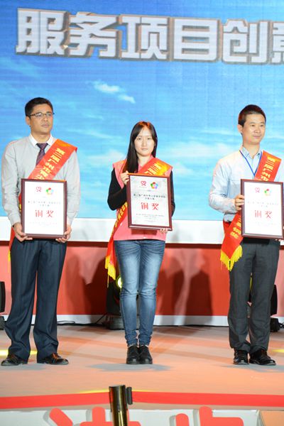 校团委青年志愿者行动指导中心执行主任张琳(中)上台领奖