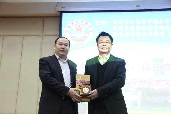 本次讲座由人事处、教师发展中心主办,东语学院承办。副校长阳爱民、东语学院院长陈多友出席了本次讲座。讲座上,阳爱民向钟智翔赠送了纪念品。