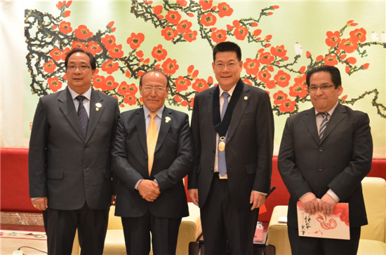 本网讯 5月11日,秘鲁圣佩德罗大学校长何塞.胡阿曼(Jose Maria Huaman Ruiz)、基金会会长罗兆雄(Cesar Loo Cardenas)、秘鲁驻广州总领事馆总领事大卫.卡马达(David Gamarra)、圣佩德罗大学教育系系主任胡里奥.兰德拉斯(Julio Aurelio Landeras Rodriguez)、大学法律系主任安赫尔.奎萨达(Angel Roberto Quezada Tomas)、 会计和管理系系主任奥斯卡.克鲁兹(Oscar Porfirio Cruz Cruz)等一行十一人来访我校。我校校长仲伟合在北校行政楼贵宾厅会见了来宾。