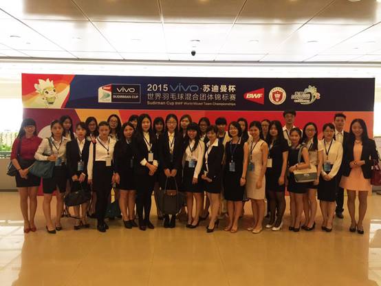 5月9日,来自三个学院的7名翻译为本届苏迪曼杯的赛前新闻发布会提供英、日、韩、印尼四种语言的交传服务。礼宾部钟君同学为世界羽联秘书长托马斯(Thomas Lund)提供陪同口译服务。另外有4名同学赴白云机场迎接各自负责的参赛队伍。其他同学也在各自的岗位上出色完成工作任务。