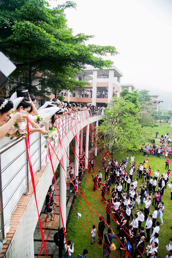 我校校长仲伟合、副校长何传添及广大师生出席活动,来自世界各地的亲友团近千人浩浩荡荡为伉俪们送上祝福。