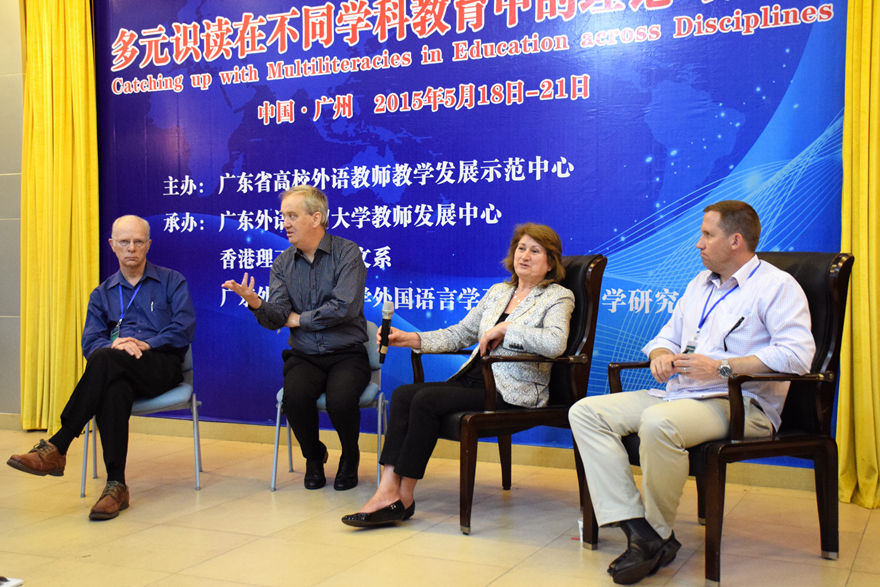 本网讯 5月18日-20日,由广东省高校外语教师教学发展示范中心主办,教师发展中心、香港理工大学英文系、外国语言学及应用语言学研究中心联合承办的第二届广外—香港大多元识读论坛在我校举行。本次论坛的主题为“多元识读在不同学科教育中的理论与应用”,邀请了多元识读研究领域的领军学者Mary Kalantzis(新伦敦小组成员、美国伊利诺伊州大学香槟分校教育学院院长)、Bill Cope (新伦敦小组成员、美国伊利诺伊州大学香槟分校教育政策研究院教授)、Len Unsworth(澳大利亚天主教大学教授)及Mark Nelson(日本神田外语大学英语语言研究中心主任)等前来作主旨发言,百余名来自全国各地高校的专家、学者和在读博士生、硕士生参加了本次论坛。