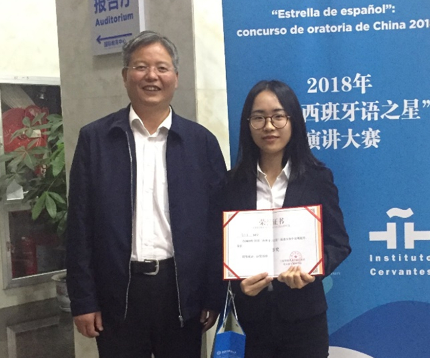 本网讯 10月20日,全国“西班牙语之星”演讲大赛在上海外国语大学松江校区举办。我校2015级西班牙语专业的李冬洁在来自全国57所院校的382名选手之中脱颖而出,进入决赛并荣获一等奖。