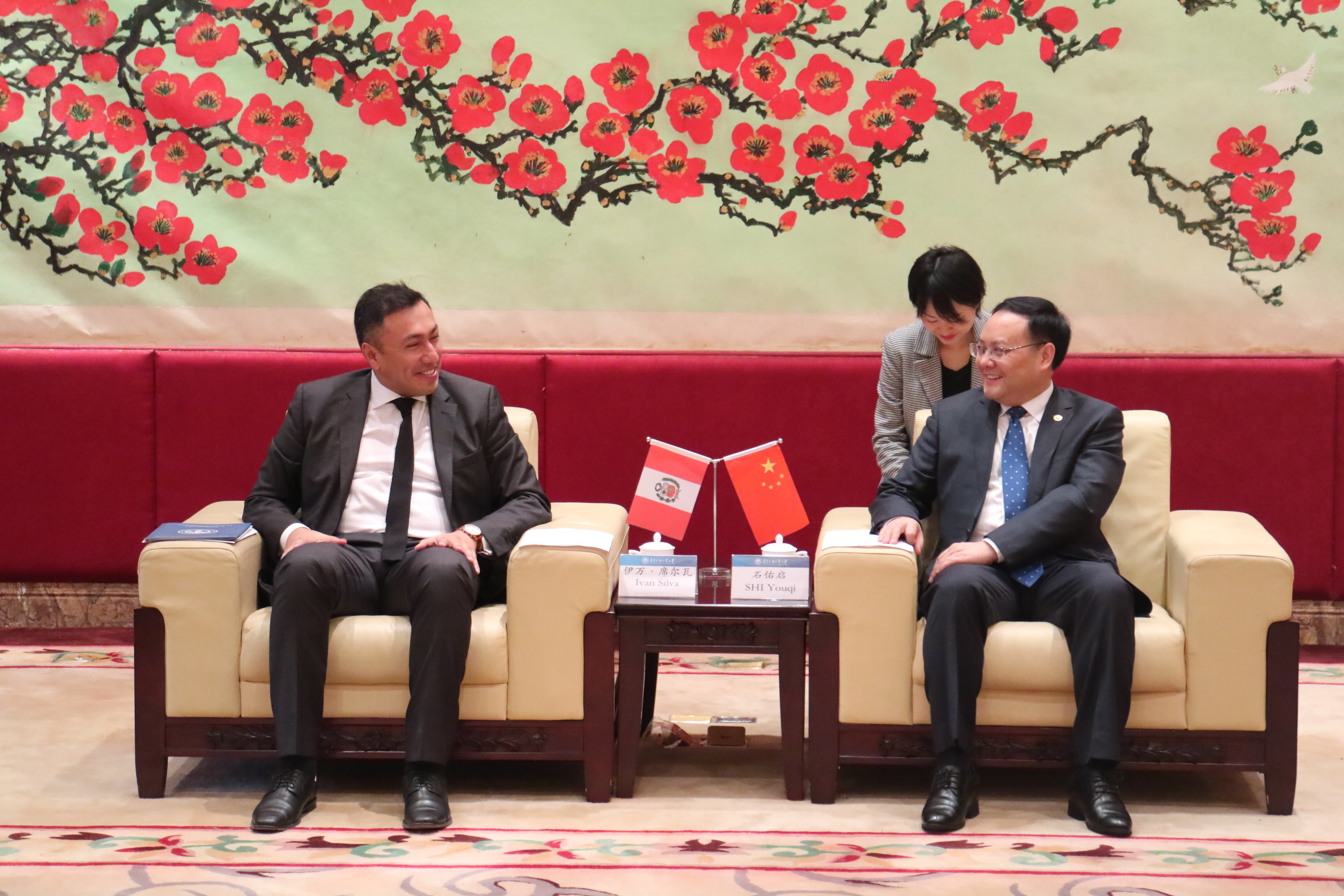 本网讯 12月4日,秘鲁驻广州总领事馆领事兼馆长伊万·席尔瓦 (IVAN SILVA)先生一行来访,我校校长石佑启在北校区行政楼贵宾厅会见来宾。