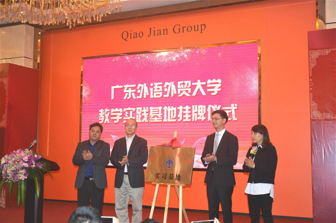 随后相关负责人共同为广外经贸经贸学院教学实践基地揭牌。