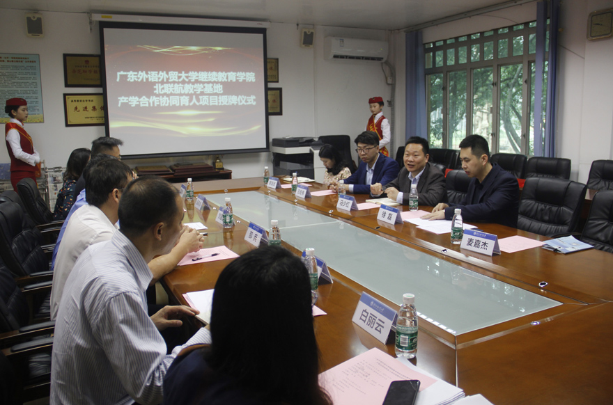 刘建达对继续教育学院顺利通过教育部协同育人项目审批表示祝贺,高度肯定了继续教育学院与北联航产学合作协同育人的人才培养模式。他强调,我校一直以来非常重视“产学研”结合,我校通过广交会、亚运会和实训基地等多种形式,培养了一大批高素质的优质人才,在培养国际化的应用型人才方面具备得天独厚的优势。希望继续教育学院与北联航进一步深化合作,拓宽人才培养途径。
