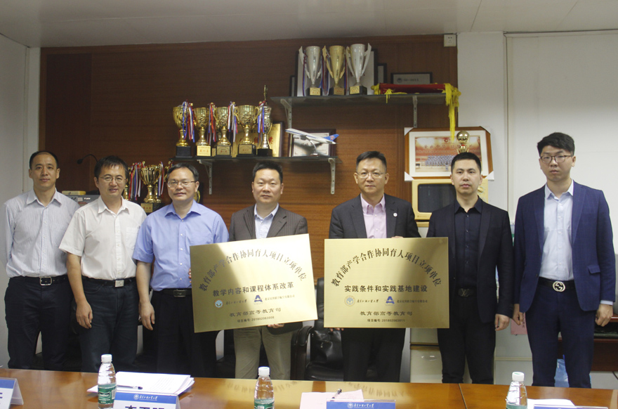 本网讯 经教育部高等教育司两轮严格的专业审核,我校申报的“民用航空服务专业课程体系改革与建设”与“民用航空合作共建实训基地”两个协同育人项目成功获得立项。4月18日上午,我校继续教育学院北联航教学基地产学合作协同育人项目授牌仪式在北校区第三教学楼207会议室举行。北京民用联合航空有限公司副总裁马少红,我校副校长刘建达,以及相关工作人员出席授牌仪式。