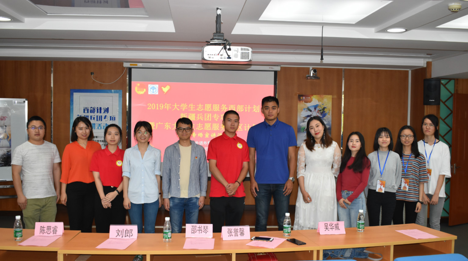 本网讯 4月17日下午,2019年大学生志愿服务西部计划新疆兵团专项暨广东大学生志愿服务山区计划广外专场宣讲活动在北校区第九教学楼306室举行。活动旨在积极推动大学生志愿服务西部计划、广东大学生志愿服务山区计划,号召大学生与信仰对话,到祖国需要的地方去建功立业。宣讲会前,我校副校长刘海春在迎宾厅与我校2013届毕业生、西部计划志愿者、第22届“中国青年五四奖章”获得者、新疆兵团第三师图木舒克市团委副书记邵书琴等宣讲代表座谈。