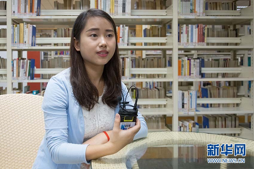 刘诗薇接受采访。新华网发(罗世伟 摄)
