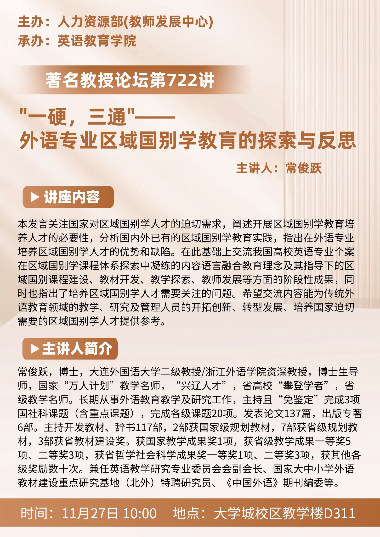 著名教授论坛第722讲:“一硬,三通”——外语专业区域国别学教育的探索与反思