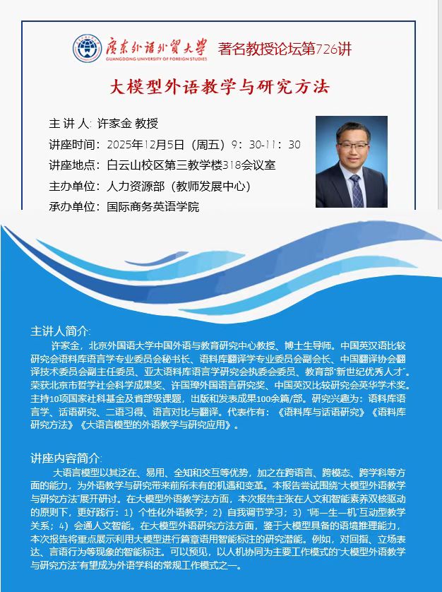 著名教授论坛第726讲:大模型外语教学与研究方法