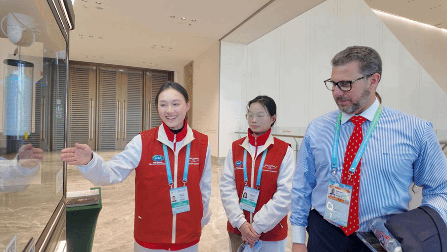 志愿者们来自广外英文学院、高级翻译学院、国际商务英语学院等学院,分布在会务礼宾、安全保卫、路线指引、信息咨询、嘉宾注册、会务翻译等岗位,并覆盖西班牙语、俄语、法语、日语、朝鲜语、英语、越南语、泰语、印地语等多个语种,与会议配备的多语种保障体系形成呼应。在科技创新、贸易合作、数字经济等多领域议题的讨论现场,志愿者们用熟练的外语架起沟通桥梁,既精准传递会议信息,也向中外嘉宾展现中国青年的专业素养与精神风貌。他们不仅是会议推进的重要支撑,也是我校人才培养成果与国际化视野的生动展现。