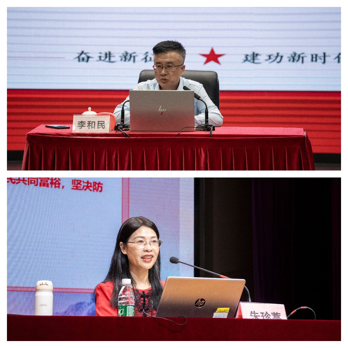 经济贸易学院党委书记朱珍葶、高级翻译学院党委书记李和民带领学员一同学习《中国共产党章程》,聚焦党的二十大以来的理论创新成果,引导学员深刻把握党章与时俱进的精神实质,勉励大家要以党章为镜锤炼党性修养,切实做到尊崇党章、践行党章、牢记使命。