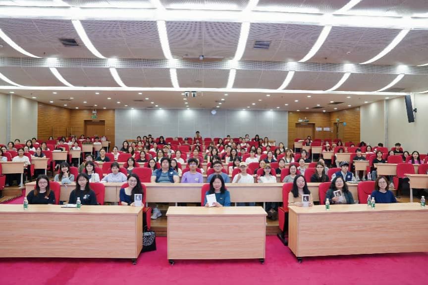 图书馆(档案馆)馆长陈红霞主持活动开场,介绍了苏菲·玛索不仅是享誉全球的演员,更是跨界文学创作者。1996年,苏菲·玛索推出首部作品《说谎的女人》,2023年出版《暗河》,2026年该书由花城出版社推出中译本。《暗河》出版后斩获法国2024年玛格丽特·德·纳瓦尔奖,其写作获得文学界高度认可。分享会围绕苏菲·玛索文学创作、《暗河》作品解读、法国女性主义写作发展三大核心内容展开,现场氛围热烈,师生参与度极高。