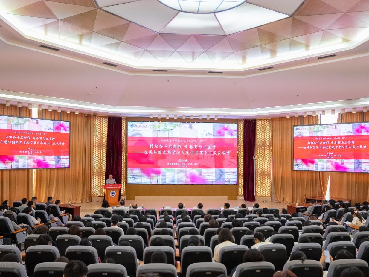 本网讯 4月14日上午,学校2026年春季学期校长“思政第一课”在大学城校区八角楼会议室举行。校党委副书记、校长闫相斌以“接续奋斗启新程 青春有为正当时——在感知国家与学校发展中书写个人成长华章”为主题,为师生们带来了一场逻辑严谨、内容翔实、案例鲜活的思政课。本次“思政第一课”由校党委常委、宣传部部长陈彦辉主持。