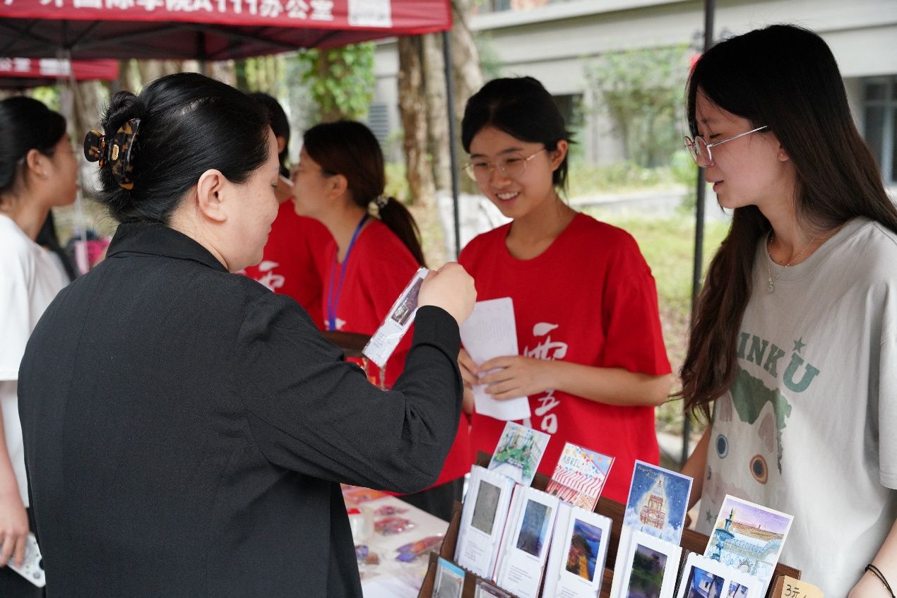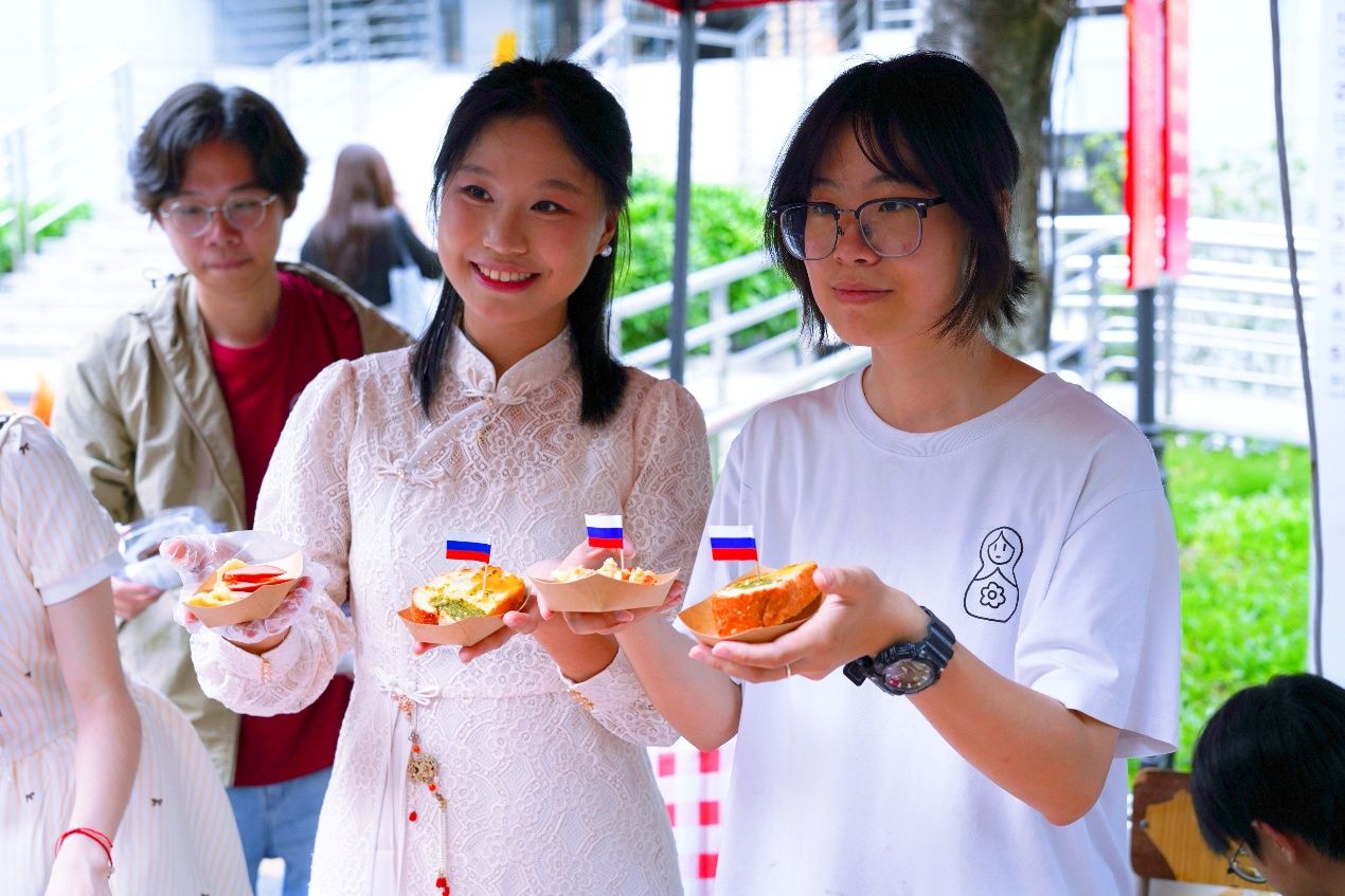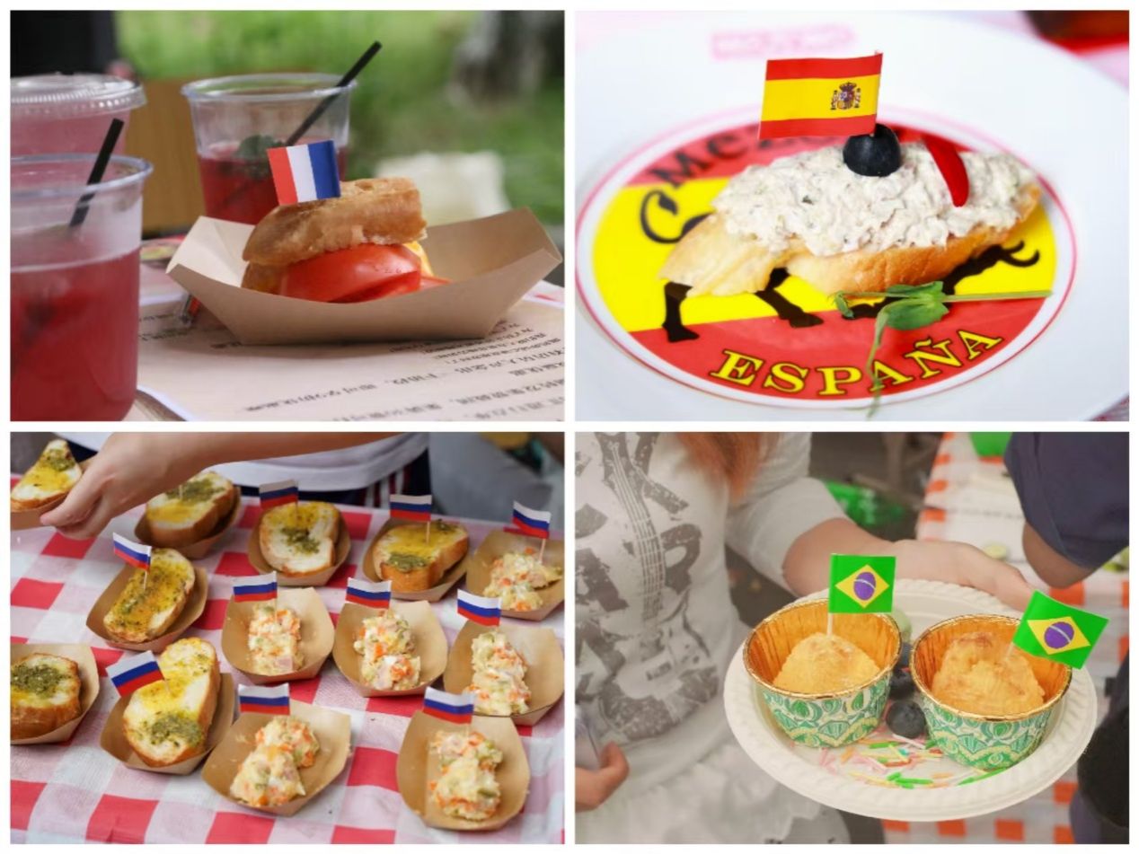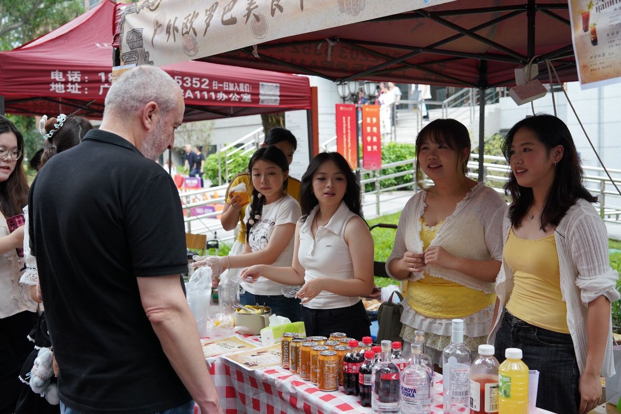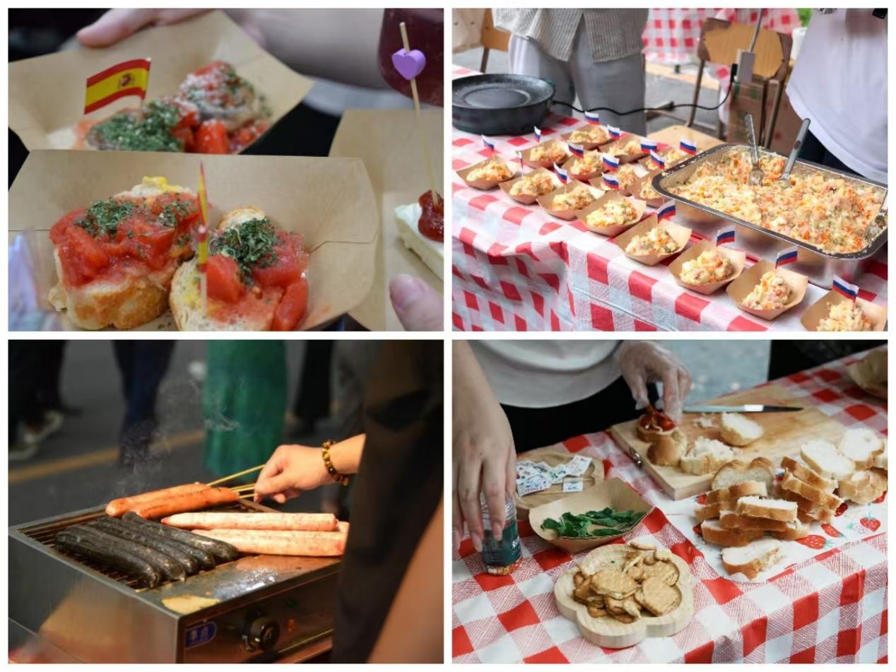 循着歌声与欢笑声望去,主校道上的美食嘉年华已是人头攒动。俄语摊位前,金黄酥脆的列巴和油亮的红肠吸引师生驻足品尝;西班牙语摊位的巴斯克蛋糕绵密香甜,桑格利亚酒果香四溢;法语摊位的法棍三明治按照传统配方烤制,获得了师友们的连连称赞;德语摊位的烤肠在铁板上滋滋作响,搭配冰镇啤酒让人回味无穷;葡萄牙语摊位的特调果汁色彩缤纷,带来热带海滨的清爽;各国风味一站式解锁。