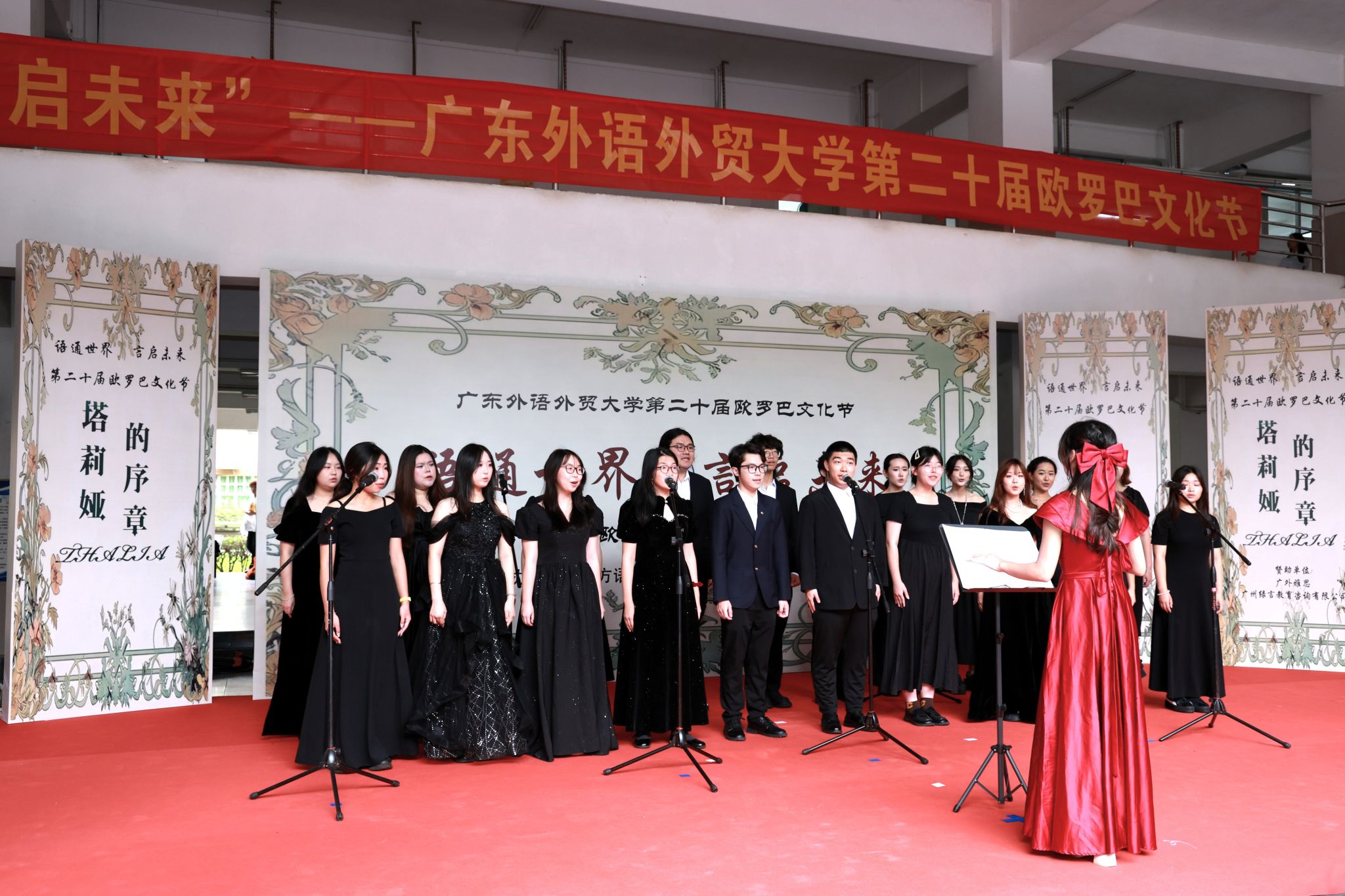 本网讯 4月16日下午,广东外语外贸大学白云山校区迎来了一场文化盛会,由西方语言文化学院、国际交流合作部联合主办,教务部协办的第二十届欧罗巴文化节正式开幕。本届文化节以“语通世界・言启未来”为主题,为校园再添一道多元文化交流的亮丽风景。