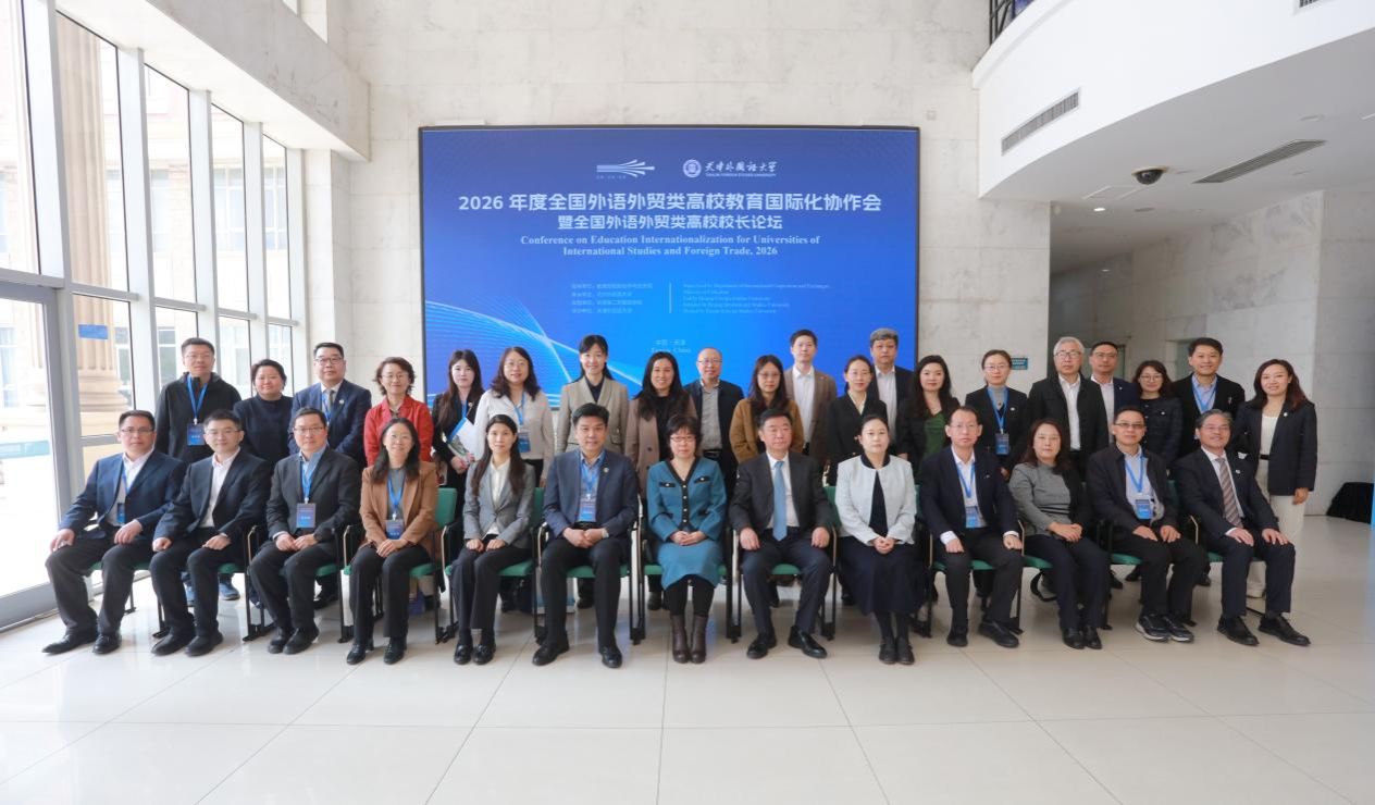 本网讯 4月12日,2026年度全国外语外贸类高校教育对外开放协作年会暨校长论坛在天津举行。本次会议由全国外语外贸类高校教育对外开放协作会主办、天津外国语大学承办,来自北京外国语大学、北京第二外国语学院、大连外国语大学、对外经济贸易大学、广东外语外贸大学、上海对外经贸大学、上海外国语大学、首都经济贸易大学、四川外国语大学、外交学院、西安外国语大学、浙江外国语学院等全国13所高校代表参会。教育部国际司政策规划处副处长张远萌代表全国外语外贸类高校教育国际化协作会指导单位出席会议。中国世界贸易组织研究会会长、原商务部外事司司长马建春,天津市教委国际合作与交流处处长王俊艳,天津外国语大学党委书记、校长李迎迎出席开幕式并致辞。我校党委常委、副校长申明浩应邀出席并作主旨发言,我校国际交流合作部副部长(主持工作)陆露等参会。