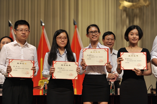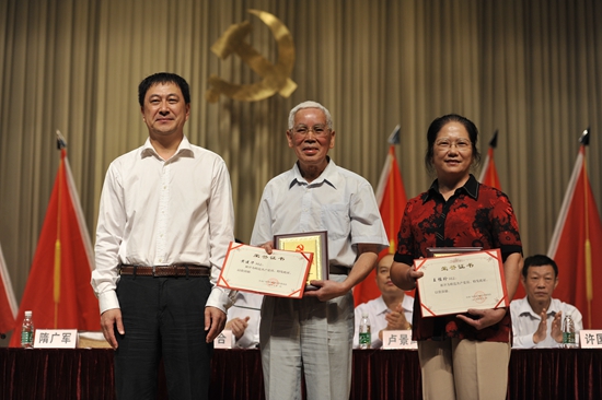 陈建平宣读了校党委《关于表彰先进基层党组织、优秀党务工作者、优秀共产党员、模范共产党员的决定》。受省委和省委教育工委的委托,隋广军为50年党龄的同志代表谢婉珍和伍惠英颁发了“南粤七一纪念奖章”,为模范共产党员黄建华、王桂珍颁发了奖牌和证书。校领导为30个先进基层党组织代表、30名优秀党务工作者和100名优秀共产党员领奖。