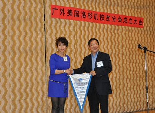 本网讯6月21日,广外美国洛杉矶校友分会成立大会举行。近80多名校友、亲属及嘉宾欢聚一堂。中国驻洛杉矶总领事馆文化参赞车兆和,暨南大学、华南理工大学、对外经贸大学南加州校友会代表到场致贺。校友总会秘书处副秘书长潘相宇代表学校出席了成立大会。