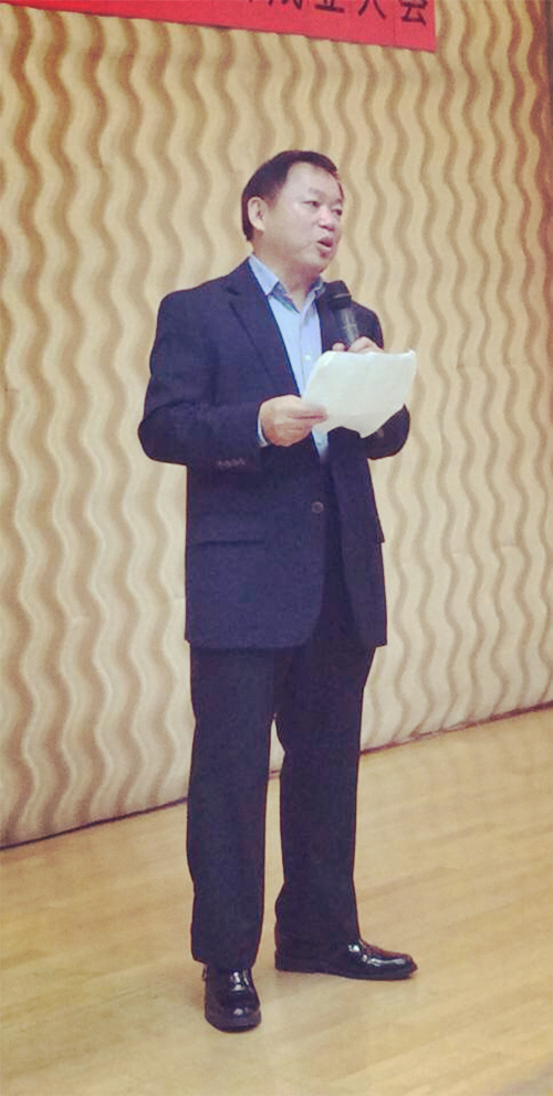 潘相宇代表学校向校友们转达了校领导的亲切问候,并介绍了学校近年来的发展情况。本次会议审核通过了首任会长乔欣和第一届理事会成员的任命,潘相宇代表校友总会向乔欣颁发会旗。