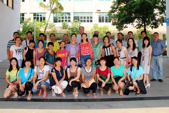 陈海辉随后上台讲话。他对于教师们放弃假期休息积极参加本次培训班表示尊敬,同时也鼓励各位教师要抓住难得的学习机会,利用广外优越的外语教学资源和环境,努力学习,提高英语口语和外语教学能力。他希望学员们能严格遵守课堂纪律,顺利完成各项培训任务。