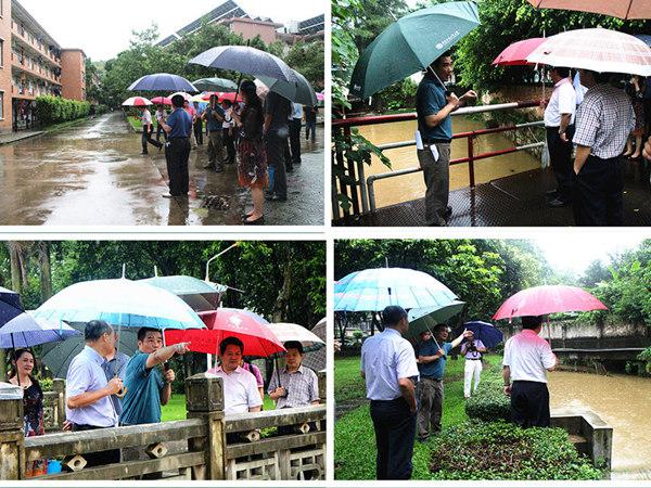 本网讯 为研究和解决困扰我校多年、师生普遍关心的学校防洪排涝治理问题,8月13日下午,市水务局根据市政府要求召集市建委、城管委、水务局和白云区政府等多个部门相关人员在我校北校区召开现场协调会。市水务局副局长吴学伟一行莅临我校实地调研,我校党委副书记卢景辉、后勤处处长杨思等陪同参与。与会人员实地勘察了我校云溪河的水文状况,吴学伟主持协调会听取各部门关于河涌治理的意见汇报,商讨制定进一步治理对策。