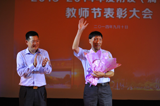 仲伟合为每位获奖教师颁奖