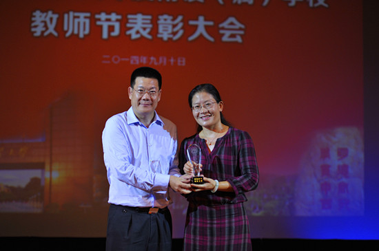 其中,广外外校被评为2013-2014年度广外附设(属)学校优秀管理奖(集体),吴玉爱等7人获评为优秀管理奖(个人),李建民获评名校长奖,卢霞等32人获评名师奖,张亚娟等21人获评优秀班主任奖,梁秋梅等14人获评教坛新星奖,马健新等33人获评优质服务奖。颁奖典礼上,仲伟合为每一位获奖教师颁奖并与其亲切合影。
