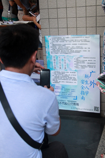 帮助困难学子,不让一个学生因为家庭经济困难而辍学是广外一项“有历史”的承诺。今年,我校提前随通知书寄送国家宣传资料,方便家庭经济苦难生提前完成申请准备,同时根据省教育厅的有关指示,继续加大补助力度。严格按照教育部和教育厅有关要求,继续完善“绿色通道”政策,做到四个“百分之百”,并安排四个“一百万”专项补助金。申请“绿色通道”,且符合条件的家庭经济困难新生百分之百给予批准。申请勤工助学岗位,且符合条件的家庭经济困难新生百分之百给予安排。申请助学金,且符合条件的家庭经济困难新生百分之百给予资助,资助金额每人2000-5000元。符合条件的家庭经济困难新生申请国家助学贷款,百分百给予审批。在新生报到处,学校为困难学生准备了装有各种日用品的“大礼包”,现场派发。