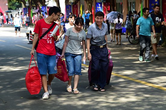 本网讯 9月14日,烈日当空,骄阳似火,广外一扫往日的静谧,喧闹中迎来了6000多个青春洋溢的新面庞。清晨,志愿者们已打点好一切迎接新一代广外人的到来。2014届5000多名本科新生和1000多名研究生新生在志愿者的带领下,迈入了向往已久的大学生活。