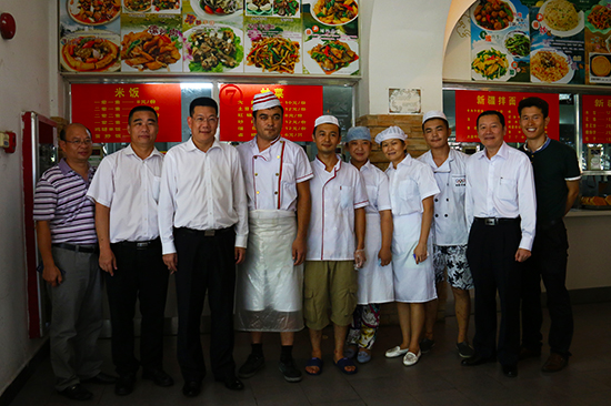本网讯 自上学期末以来,南校学子尤其是新疆学子多了个品尝美食的好去处,我校在南校区第三学生饭堂(风采园)推出清真小厨餐厅。9月15日上午,新学期伊始,校长仲伟合、副校长方凡泉等专程到清真小厨餐厅考察,对清真小厨的出品和服务工作给予肯定。