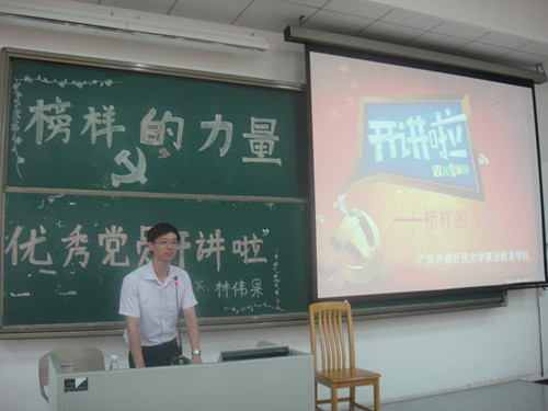 本网讯 9月12日,由英语教育学院党委主办的党建工作坊之榜样的力量——优秀党员“开讲啦”活动在南校区教学楼C308拉开了帷幕。开讲者为法学院2006届优秀校友林伟果,他与学院的部分同学分享了个人的成长历程、学习工作经历和体会以及人生发展感悟,通过现身说法使同学们受到启迪、得到教益。英语教育学院党委书记林绍雄、副书记何伟儒等领导以及教育系2011级、2012级的党员、入党积极分子和学生骨干等参加了活动。