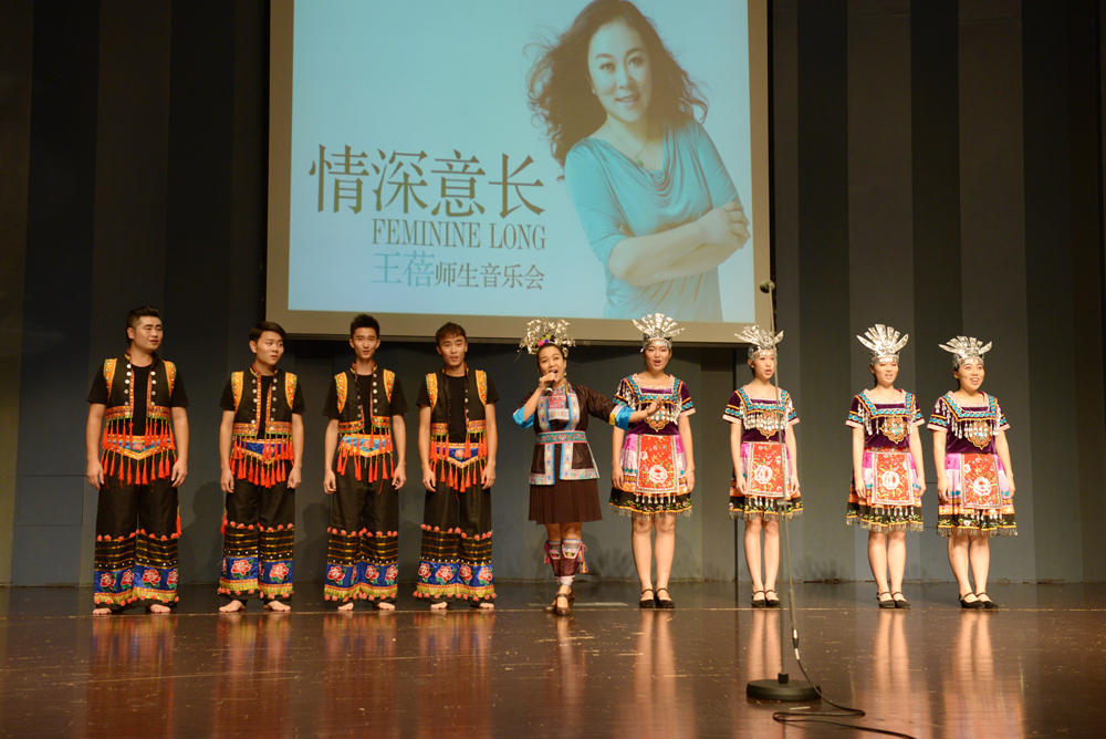 当晚8点,东莞玉兰大剧院小剧场座无虚席。王蓓老师在主办方的盛情邀请下,带领她的全体学生在此成功举办了“情深意长”师生音乐会。这是王蓓老师继今年5.18在星海音乐厅举行独唱音乐会后的又一次舞台实践。此前,由王蓓老师主持省级教改项目【将瑶族民歌引入广东高校民族声乐教学创新研究】已列入2013年度广东省高等学校教学质量与教学改革工程本科类立项建设项目,本次音乐会正是该项目研究成果的重要体现。