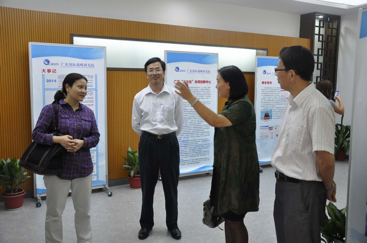 李青向华梅一行简要介绍了广东国际战略研究院的历史沿革、人员构成和科学研究、国际交流与合作等基本情况。广东国际战略研究院作为政府智库、外交部政策研究重点合作单位,依据省政府要求,积极开展国际战略方面的研究。其中,研究院针对与外交部重点合作的项目“建设21世纪海上丝绸之路”所做的决策咨询报告得到了外交部高度肯定和支持;另外,广东“走出去”协同创新中心在今年已经成为省教育厅正式批准的培育类协同创新中心,是广东省对外开放的重要内容。同时,李青向华梅介绍,研究院与外交部的政策司、亚洲司以及欧洲司等部门在政策研究和项目研究方面合作良好,有重大课题、临时应急课题等七项合作项目,取得丰硕成果。在人员交流方面,外交部参赞作为访问学者参与研究院工作,将理论研究和实务研究很好地结合起来。