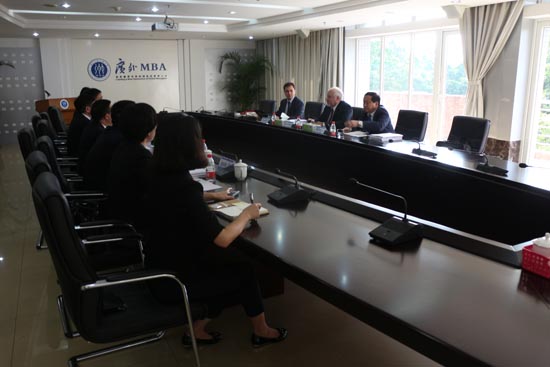 我校副校长兼商学院院长、MBA教育中心主任何传添,商学院班子成员及认证工作相关人员参与了本次预认证活动。