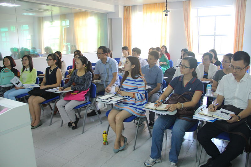 曾获广外校级优秀教学奖一等奖的王焱给在场的学员介绍了营造良好课堂氛围的五个技巧:案例教学、张力教学、鼓励教育、增强互动以及把握节奏。王焱认为,作为教师要留心日常有意思的材料,这能给课堂带来很多亮点。