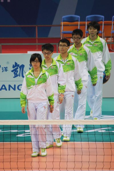 竞赛处是服务赛事最忙碌的部门之一,它主要负责比赛的相关事宜,起着重要的协调作用。在竞赛处工作的体育部教师朱性民介绍说,为了首场比赛的顺利进行,竞赛处的老师们当天都要提前一个多小时来到场馆做准备工作。场地器材设备处则是“切切实实的体力活”,那些志愿者要摆放好比赛所需的桌椅和器材,负责比赛前后的场地清洁工作。比赛时要协助裁判长工作,结束后还要用大概1个小时的时间来完成收场工作。就以在女排赛场上拖地的工作来说吧。一到比赛的暂停时间,身扛拖把的志愿者需要立即行动,“并驾齐驱”地冲进赛场、步调一致地放下拖把,用同一节奏开始拖地、转身,完成后再退回一边,整个过程一气呵成,绝不拖泥带水。那架势,那速度,那步伐,绝对是训练有素。因为如果有一个地方没有打扫干净,那么选手就会受到影响,比赛的结果就会被改写。