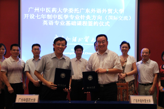 本网讯 受广州中医药大学委托,我校将开设七年制中医学专业针灸方向(国际交流)英语专业基础课程。10月23日,签约仪式在北校区行政楼贵宾厅举行。