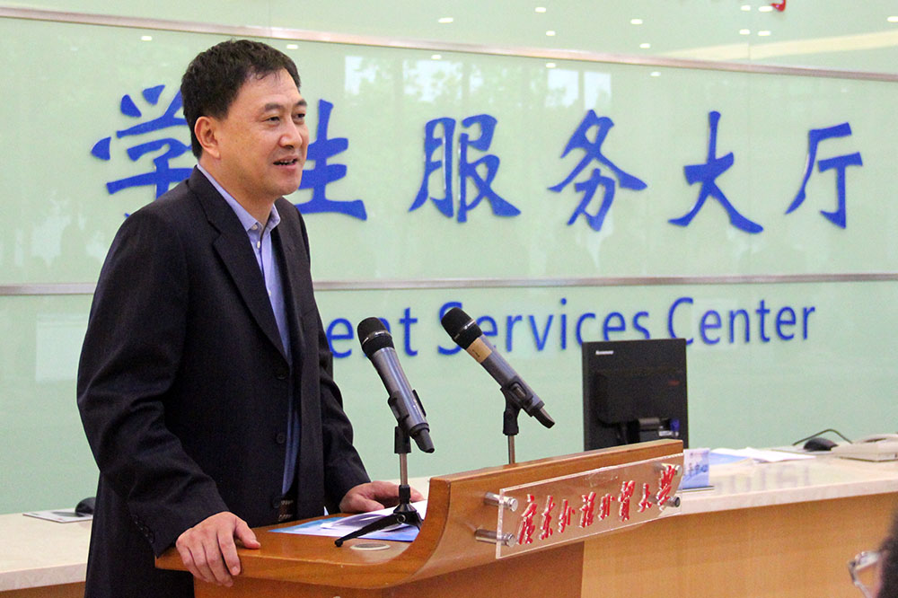 隋广军在致辞中回顾了我校建校50年来的风雨历程,他指出,50年对于一所高校来说虽然不长,但是我校已经成长为广东省乃至全国最优秀的高校之一。为了迎接50华诞,我校将开展一系列务实、简朴而又有意义的校庆活动,倒计时的开启,标志着建校50周年系列活动筹备工作进入全新阶段,我校将以此为契机,继续向前迈进;同时,要凝聚各方力量,为广外的下一步发展出主意想办法,但这也意味着我校的工作任务将更繁重,在接下来的一年中,我校将进一步求稳步推进对外宣传、校史编纂、海内外校友联络、学术交流和对外合作等方面的工作。隋广军希望,在明年校庆时,我校各项工作能够有丰硕的阶段性成果,让广外朝下一个更高的目标迈进。