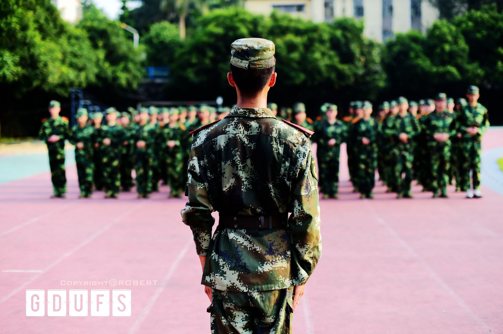 本网讯 日前,广外第八届军训摄影大赛颁奖典礼完美落幕,为今年的军训添上了一个圆满的句号。来自新闻1203的沈少丹拔得头筹,而最佳创意奖则由新闻1303班的张晓淳获得。保卫处(武装部)处(部)长钟罗军、副处(部)长李忠德和邹春权,党委宣传部、新闻学院有关负责人出席本次颁奖典礼。