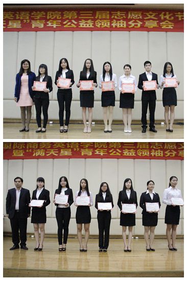 本网讯为培育和引导广大青年学子践行社会主义核心价值观,同时表彰过去一年中在各类志愿服务活动中的优秀志愿者,11月6日晚7点,商英学院在图书馆多功能报告厅举行第三届志愿文化节暨“满天星”青年公益领袖分享会。活动拉开了商英学院践行社会主义核心价值观系列志愿公益活动的帷幕。商英学院党委书记车小真、副书记张林茂,图书馆党总支书记麦培年,“满天星”青少年公益发展中心CEO、我校04级校友梁海光等出席此次开幕式。