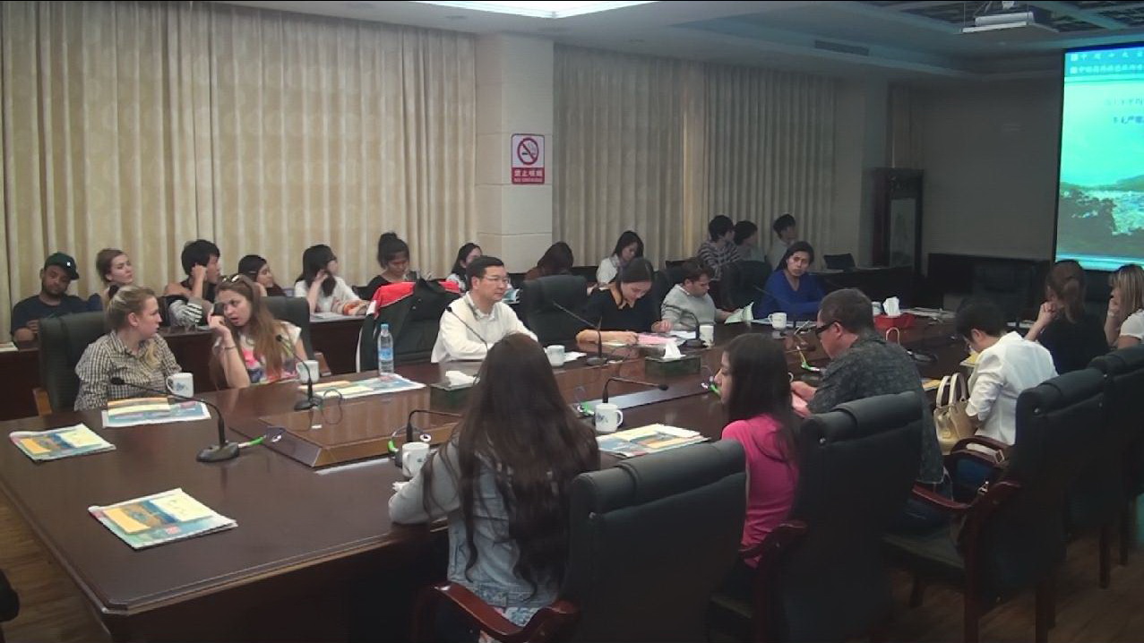 随后,一行人来到了阳江市海陵岛经济开发试验区管委会,听取了关于海陵岛的介绍。海陵区委委员、区委宣传统战部部长叶秀华主持介绍会,区旅游文体局副局长吴锦利为大家讲解了海陵岛的人文风俗、旅游发展、产业开发等情况,让留学生们对海陵岛有更全面的了解。